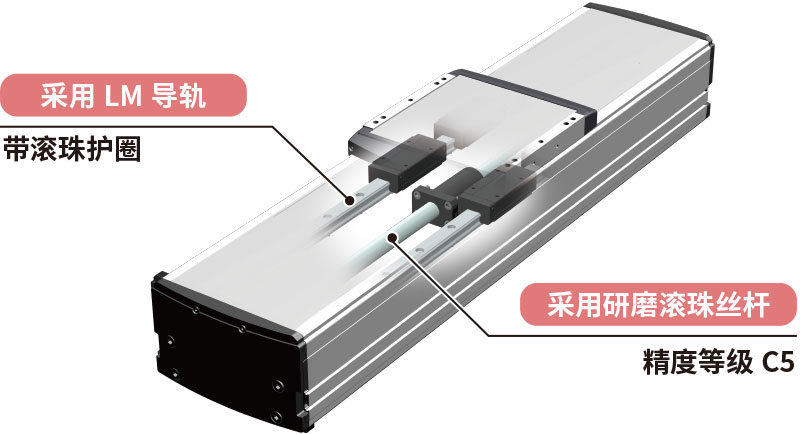 标配研磨滚珠丝杆。高可靠性和耐久性的高精度机型。