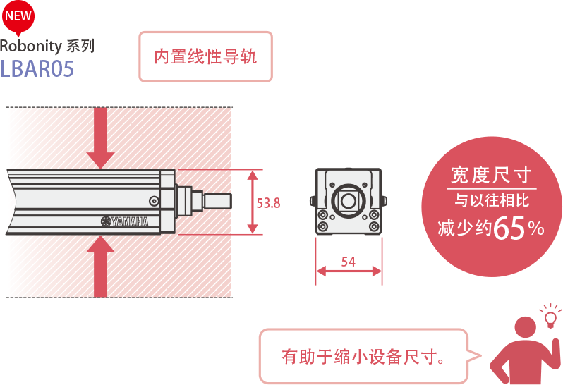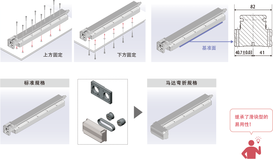 杆式带内置线性导轨,用于径向负载,有助于节省设备空间。