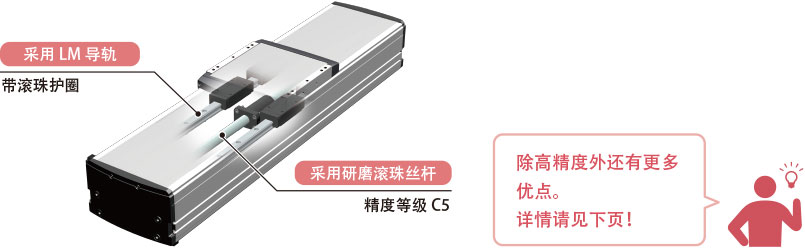 Advanced机型标准采用研磨滚珠丝杆(C5级),在高加减速下也能长期放心使用。
