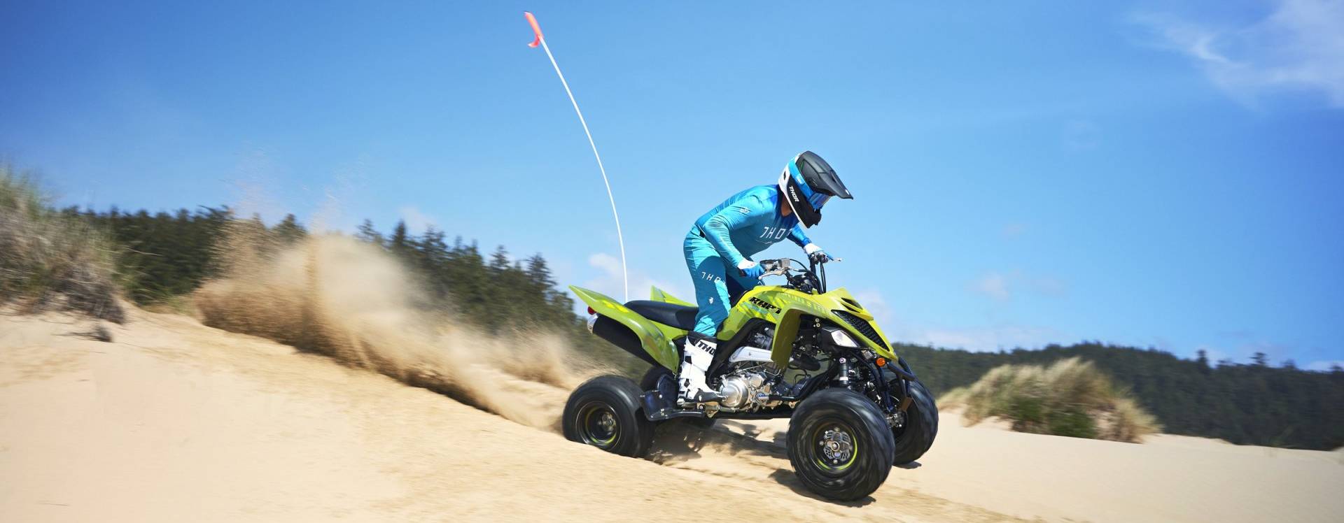 YFZ 风格的背负式减震器具有完全可调整性,提供高低速压缩阻尼调整,可实现运动多功能性以及预载荷和回弹调整。前轮行程长达 231mm,后减震器可实现 257mm 行程。