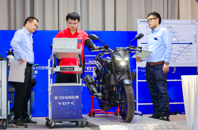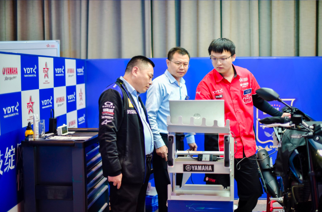 这是中国大陆地区首次进口车型的技师比赛,来自雅马哈旗舰店和中排店的30名精英服务技师,在经历排位赛、决赛、争霸赛等多轮激烈角逐,最终三强脱颖而出。