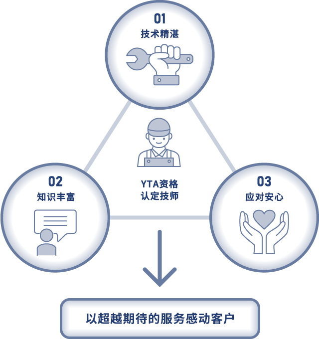 YTA认证技师是最了解雅马哈产品的人。正确的产品知识和丰富的操作经验,随时可以耐心而通俗易懂地解答关于雅马哈产品的疑问。